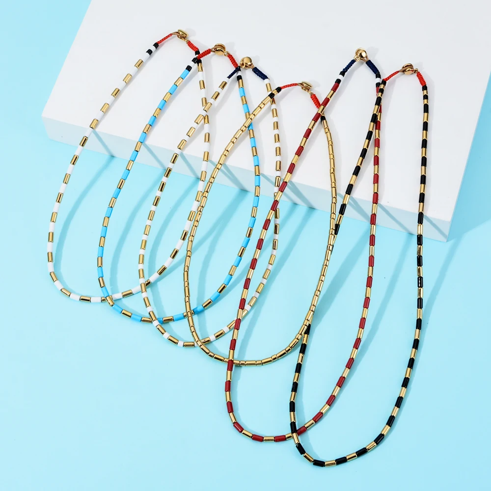 Простое Ожерелье из черепичных бусин, женское короткое ожерелье-чокер из бисера, ювелирные изделия в стиле бохо, колье, подарок