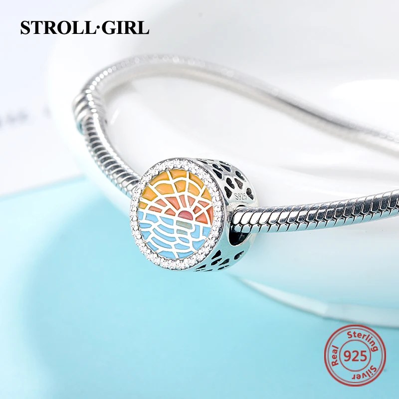 Strollgirl, новинка, 925 пробы, серебряные, полые, круглые, амулеты, цветные, эмалированные бусины, подходят к оригинальному браслету Pandora для женщи...