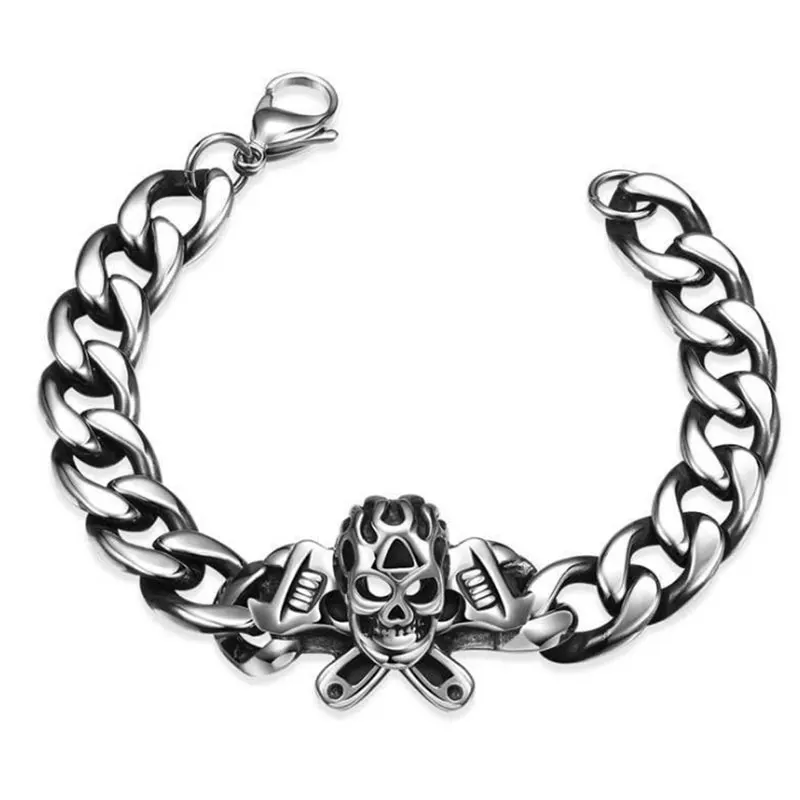 Винтаж Нержавеющая сталь скелет браслет панк личности Титан ссылка браслет-цепочка 7.87 в