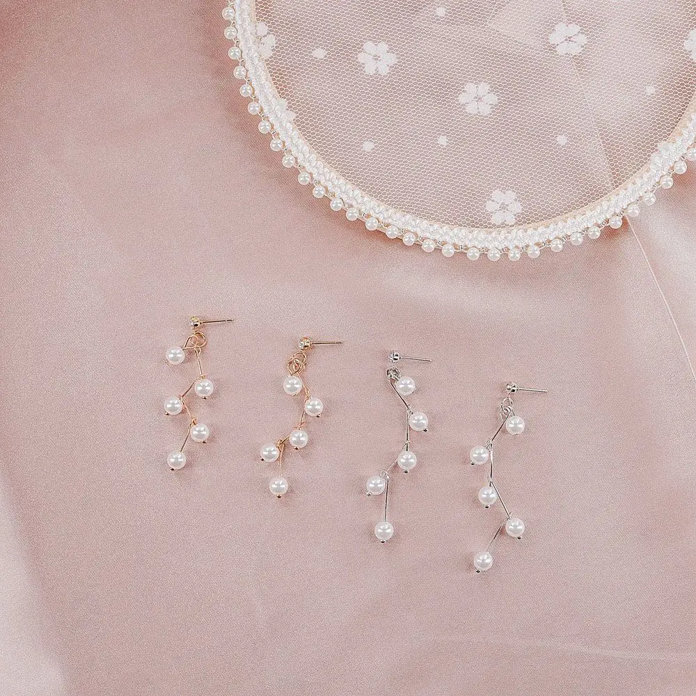 1 пара, серьги-гвоздики с искусственным жемчугом, длинные серьги, корейские простые винтажные геометрические серьги для женщин, девушек, юве...