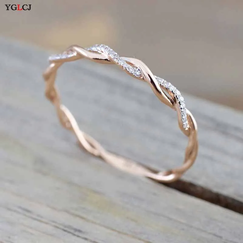 Новый шаблон витая веревка плетеное кольцо покрытие розового золота серебро микро кубического циркония обруч женские Модные аксессуары