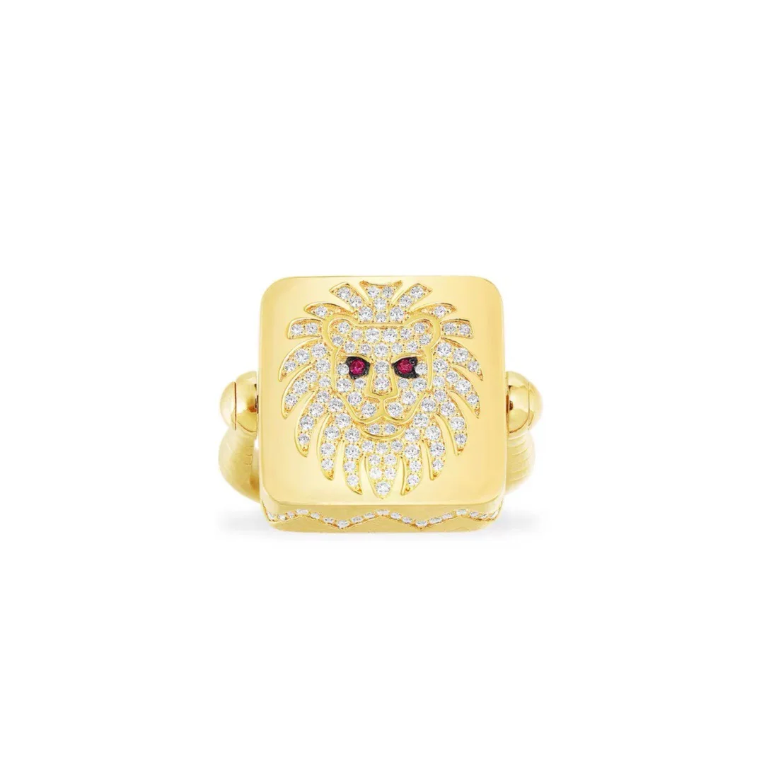 Умное желтое Золотое кольцо с фианитом Звезда Луна Лев кольцо модный бренд женские ювелирные изделия
