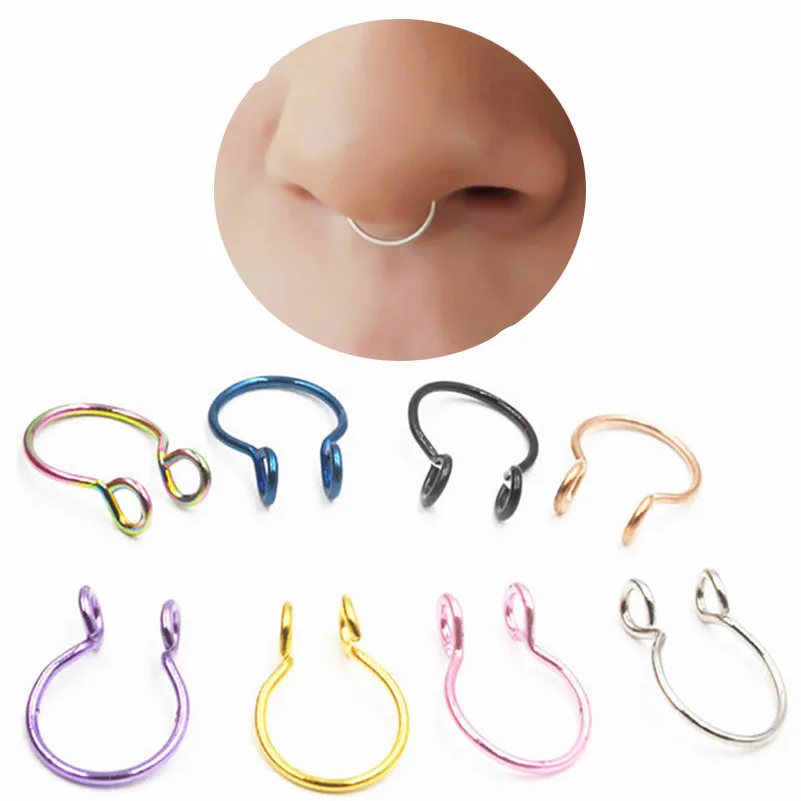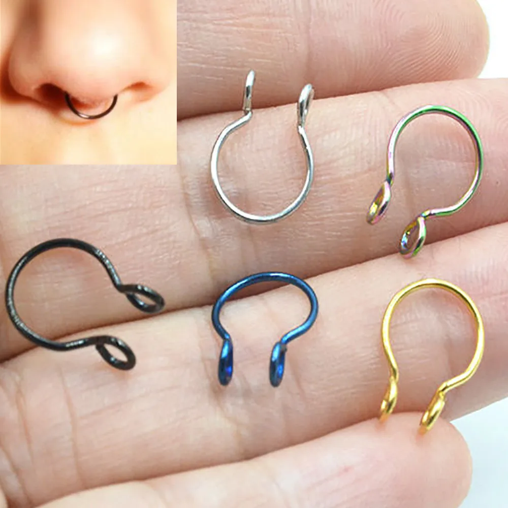 Простые 2 шт u-образные кольца для носа, кольца для перегородки, титановые серьги для пирсинга носа, ювелирные изделия для пирсинга в стиле панк