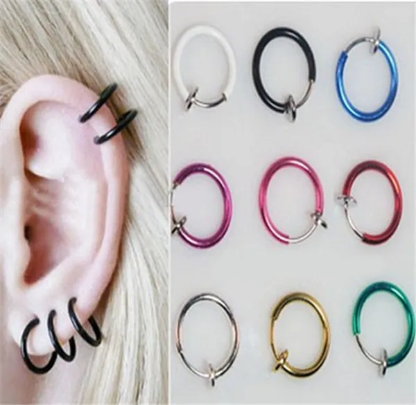 Пирсинг Nombril 2017 новая мода 2 шт 10x13 мм красочное кольцо в нос имитация Гота панк губы Ушная клипса пирсинг кольцо серьги