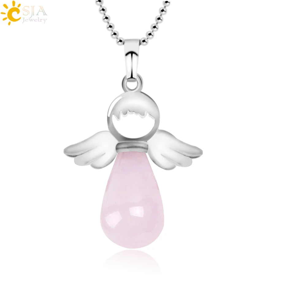Csja Ангел ожерелья с крыльями Подвески Подвеска для Женский натуральный камень лазурит фиолетовый розовый кварц женский подарок ювелирных ...