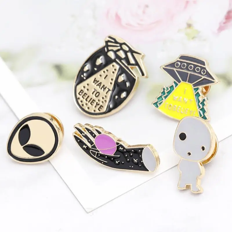 Милый мультфильм инопланетянин НЛО ручной Сплав Брошь легкая одежда значок Эмаль Платье с отворотом шляпа Декор на шарф аксессуар