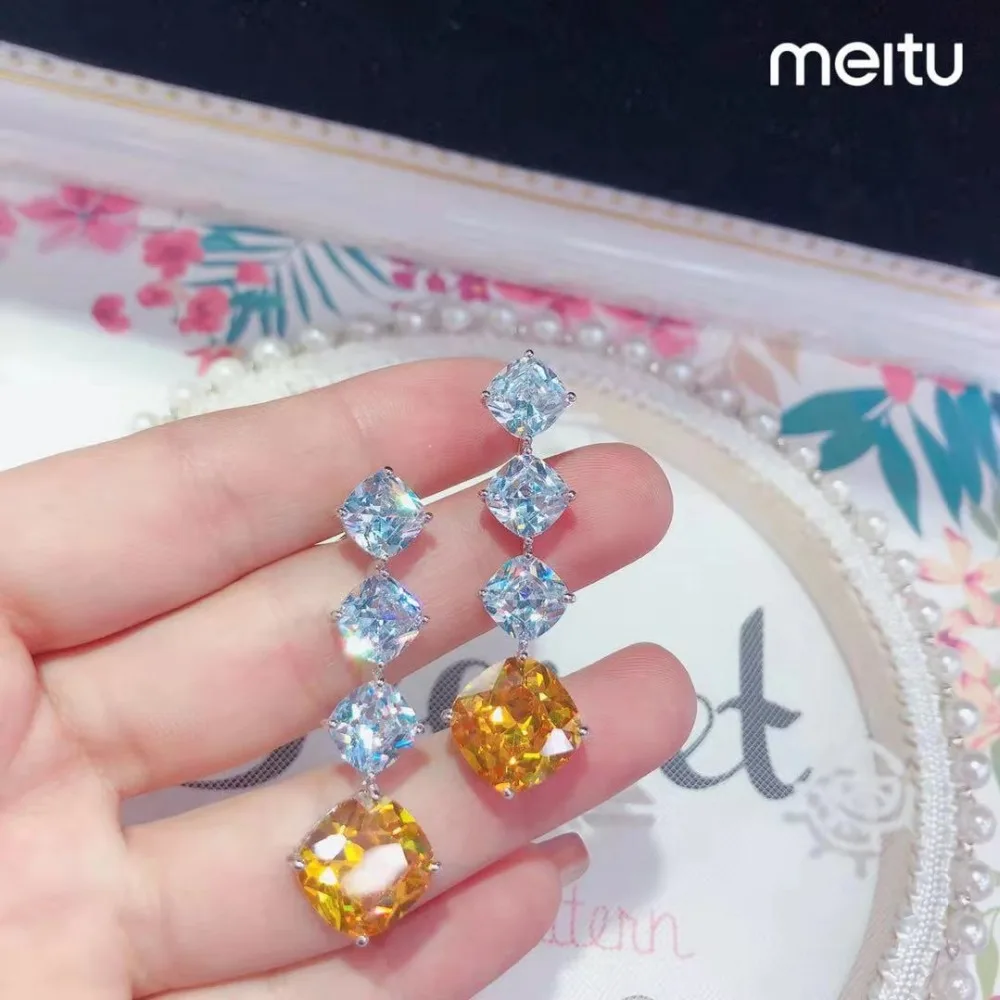 HIBRIDE красивый круглый вырез прозрачный и желтый кубический Zirocnia для женщин падение сережки-подвески Pendientes mujer moda E-719