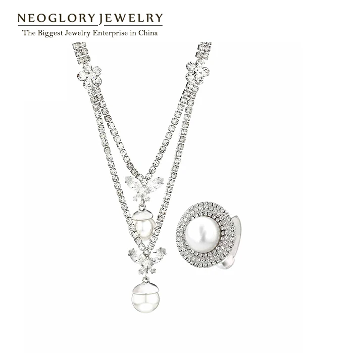Neoglory Мода Имитация жемчуг мульти Слои Ювелирные наборы свадебные Обручение горный хрусталь для Для женщин Новинка 2017 года горох QC4