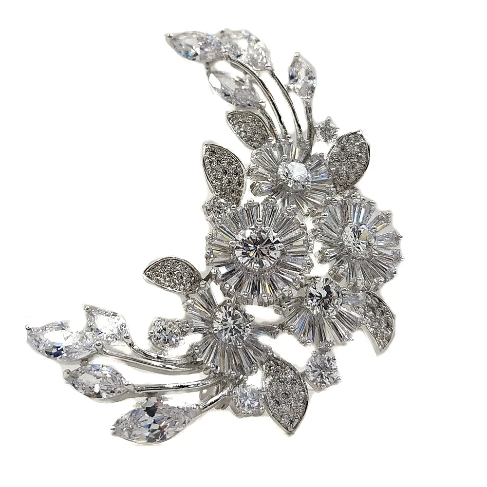 Викторианский букет стиль лист цветочный спрей Брошь Серебряный тон маркиза огранка CZ Листья Dasiy цветы булавки Bling свадебный аксессуар