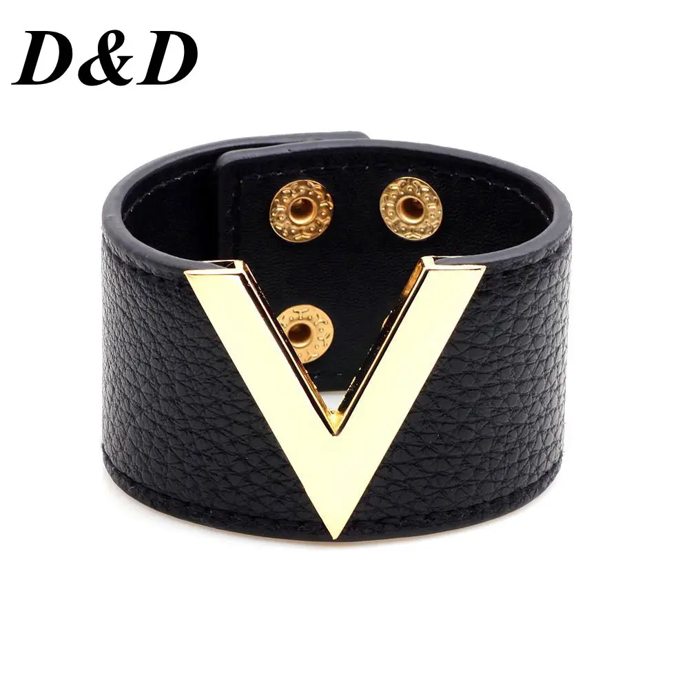 Европейский и большой кожаный браслет, простой Универсальный Широкий браслет OL V Word для женщин, женский новый браслет на запястье, ювелирное изделие