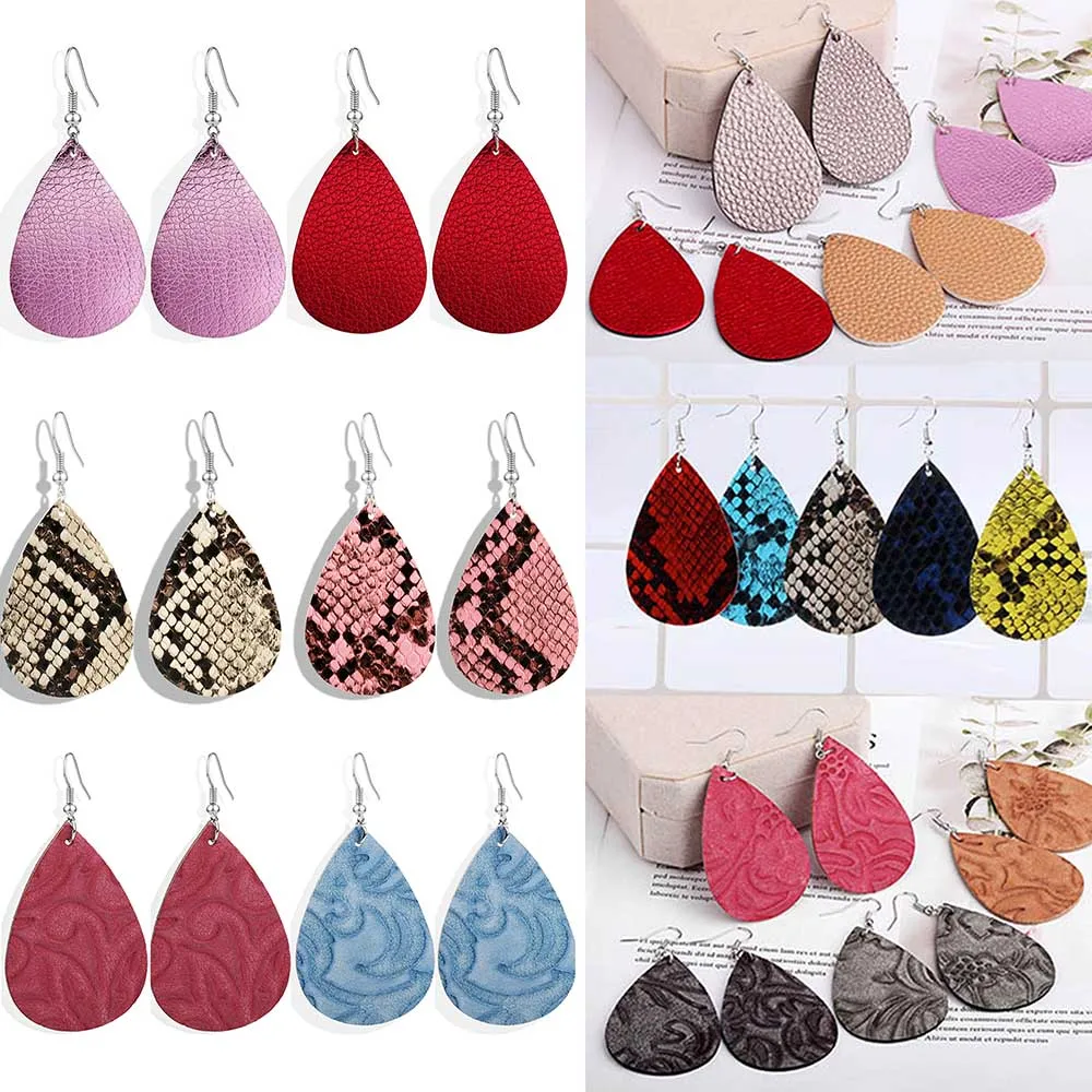 Новая мода Змеиный узор серьги из кожи для женщин 8 цветов Teardrop капли воды серьги дамы в стиле панк ювелирные изделия оптовая продажа