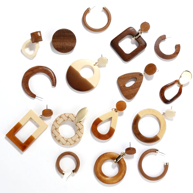 Женские серьги-подвески AENSOA, простые геометрические круглые квадратные деревянные длинные висячие серьги с натуральным сплайсингом, ювелирные изделия