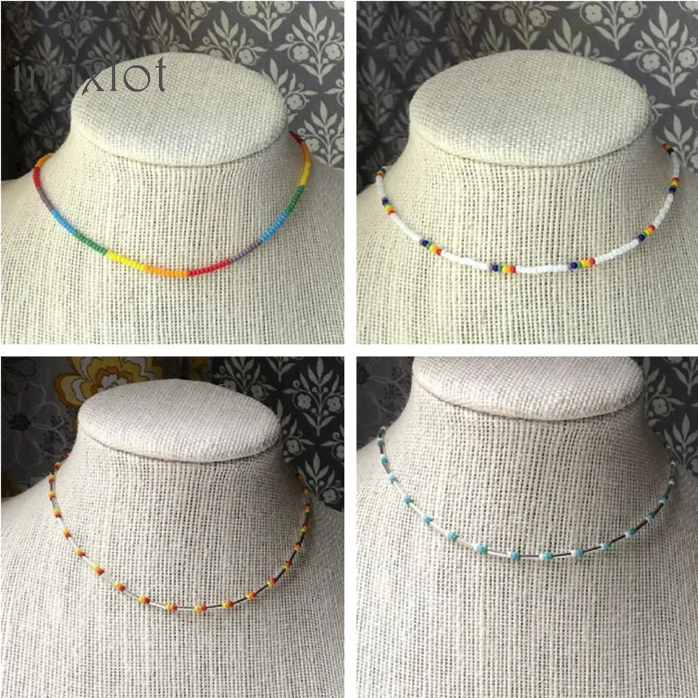 Простое Семя Ожерелье из бусин женщин струна из бисера Короткое ожерелье ювелирные изделия чокеры ожерелье подарок