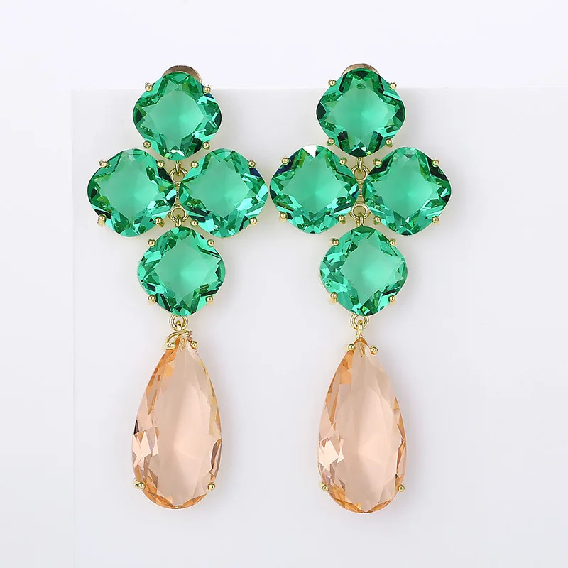 Bilincolor модные роскошные зеленые cz с белым жемчугом Висячие барочные серьги для женщин