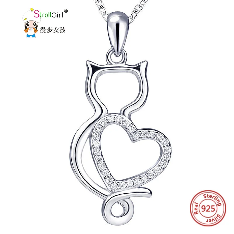 StrollGirl Новинка 100% 925 Стерлинговое Серебро животное цепочка для кота кулон и ожерелье кубик diy Ремесло Мода ювелирные изделия делая lover gif