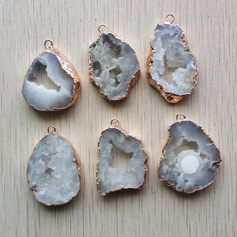 Модные гальванические Обрезной ломтик натуральный кристалл неправильной круглой формы подвески для колье Изготовление ювелирных изделий 6 шт./партия оптовая продажа