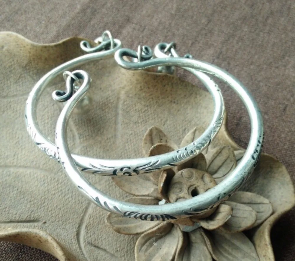 Очаровательный Национальный характеристики ручной работы Мяо Серебряный простой открытый колокольчик браслет Бесплатная доставка