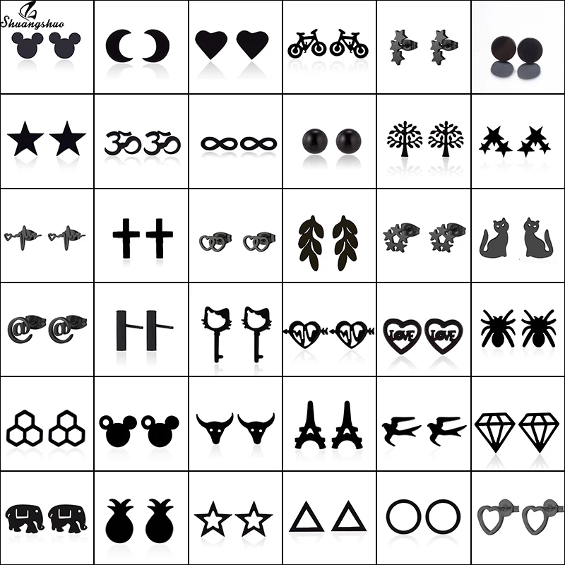 Shuangshuo, черные серьги-гвоздики из нержавеющей стали, мини серьги для женщин и девочек, модные мини-серьги, миниатюрные бижутерия с Микки