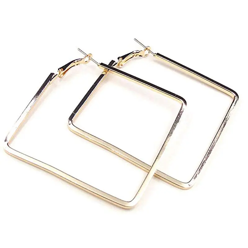 Большие эффектные модные розовые золотые серебряные Квадратные Серьги Ювелирные Простые геометрические серьги для женщин металлические с...
