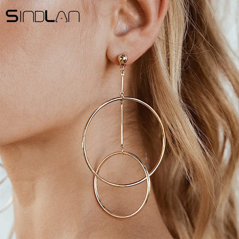 Sindlan крутые простые круглые большие серьги висюльки для женщин гиперболы геометрические очаровательные серьги золотые серьги ювелирные из...
