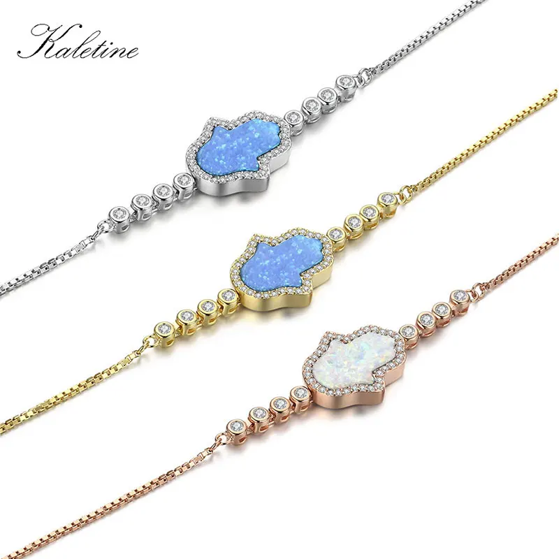 Натуральная 925 браслеты стерлингового серебра Lucky Хамса рука Фатимы синий белый синтетический опал MOP глаз для женщин ювелирные изделия
