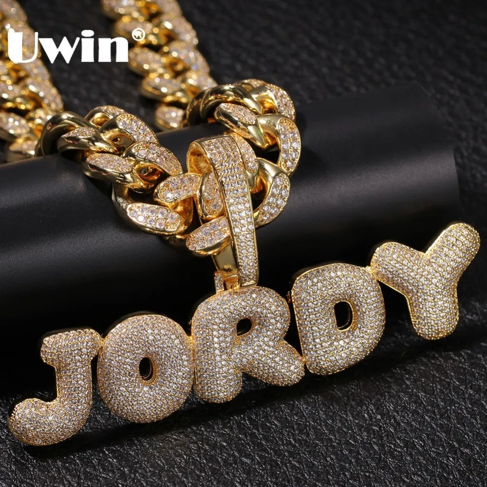 UWIN большая застежка Заказные буквы с именем пузыря с 20 мм кубинской звеньевой цепочкой, кубическим цирконием, модные ювелирные изделия, подвески, ожерелья