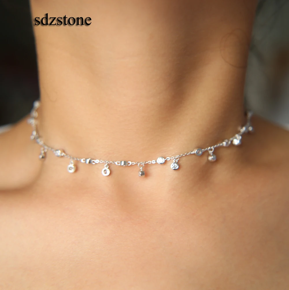 Модные украшения 2018 высокое качество роскошные cz капельная капля Шарм chocker cz станция 925 пробы slver женские ювелирные изделия короткое ожерель...
