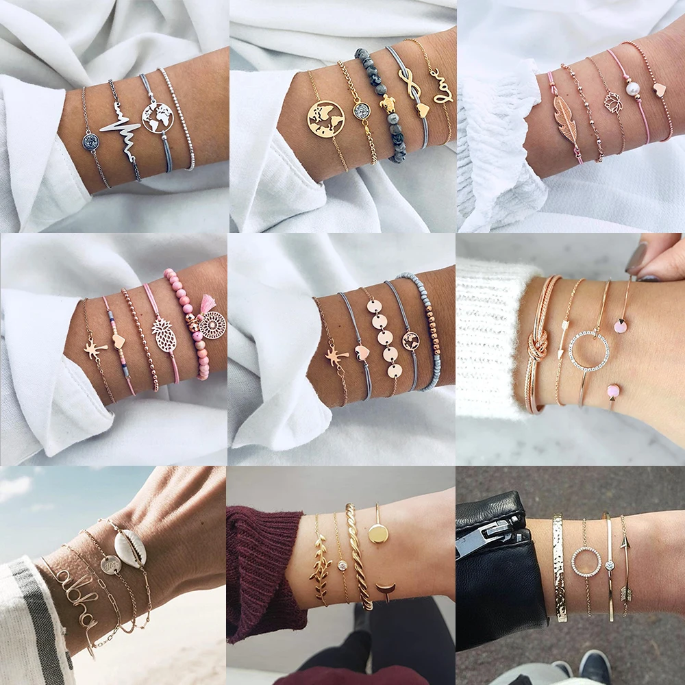 4 шт./компл. Классическая стрелка узел Круглый Кристалл Многослойные Регулируемый Открытый браслет комплект для женщин модные вечерние укр...