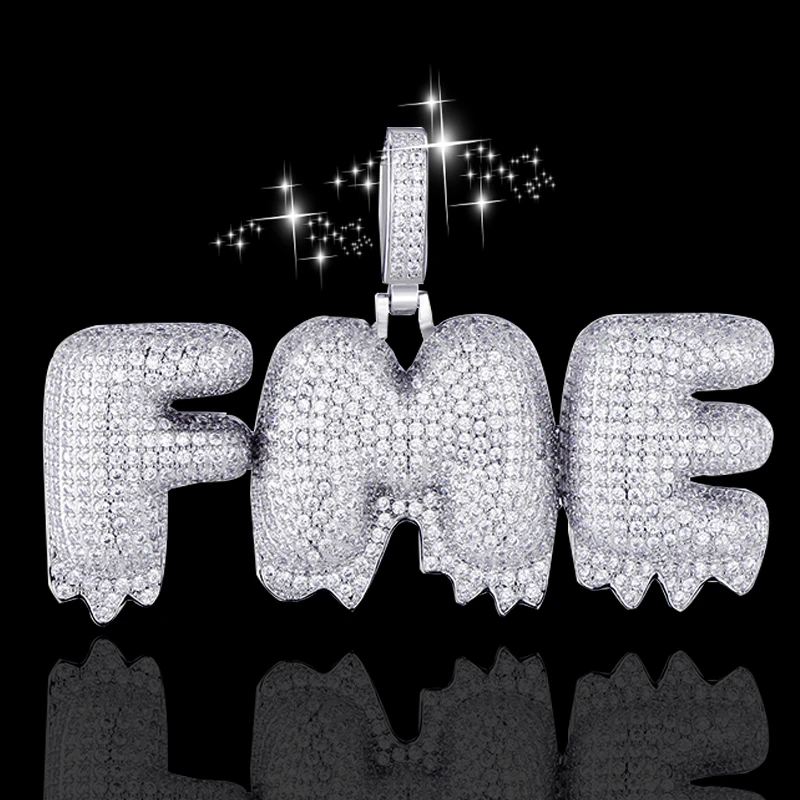 D & Z Iced Out Bling CZ капельные буквы на заказ ожерелье микро проложенный пузырь письмо кулон колье для мужчин хип хоп ювелирные изделия