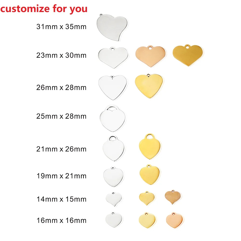 MYLONGINGCHARM 30 шт Бесплатная гравировка из нержавеющей стали, очаровательные гравюры в форме сердца, подвеска в форме сердца для браслета, ожерелья
