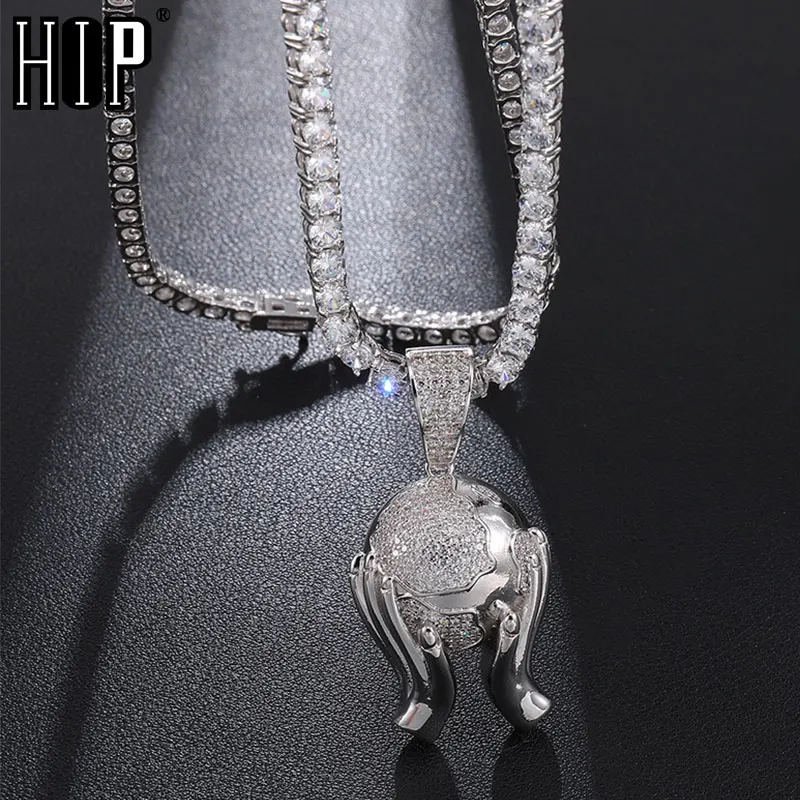 Хип-хоп AAA циркон Iced Out Bling CZ Hand Holding Earth кулон и ожерелья для мужчин раппер ювелирные изделия с теннисная цепочка