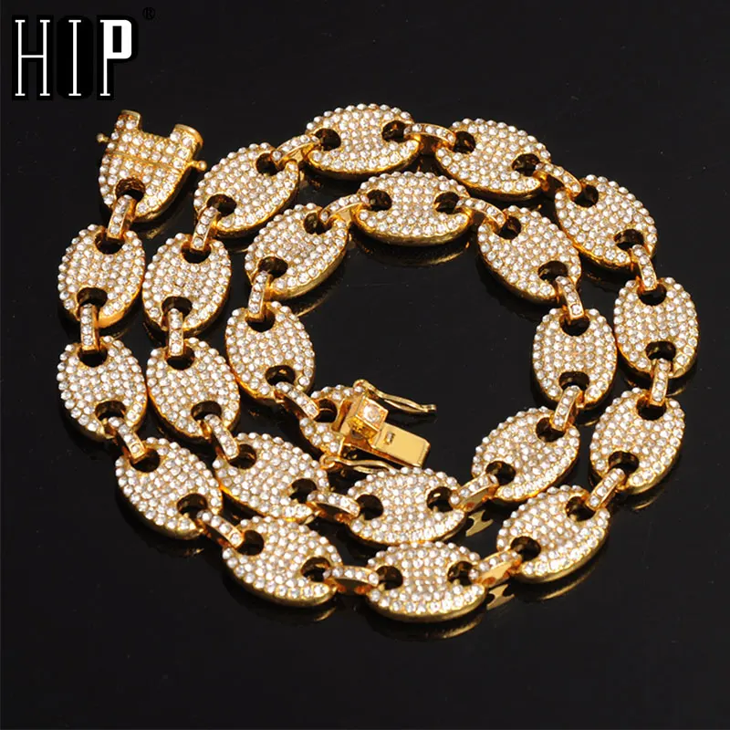 Хип-хоп CZ золото кофе со льдом из сплава в виде Свинки носа Стразы ожерелье очаровательное звено цепь шикарные ожерелья для мужчин ювелирные изделия