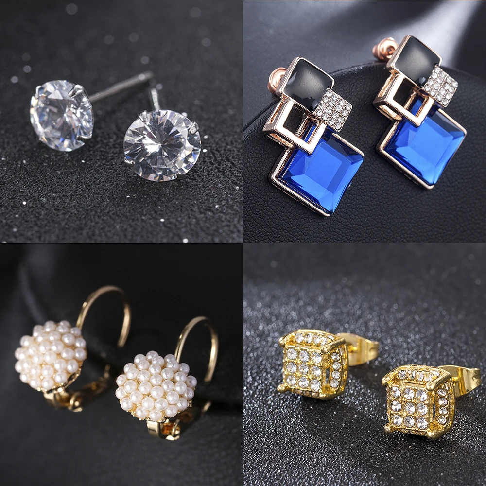 Модная элегантная со стразами сердце серьги для Для женщин Роскошные Большой Циркон Треугольники квадратный себе Стад Серьги