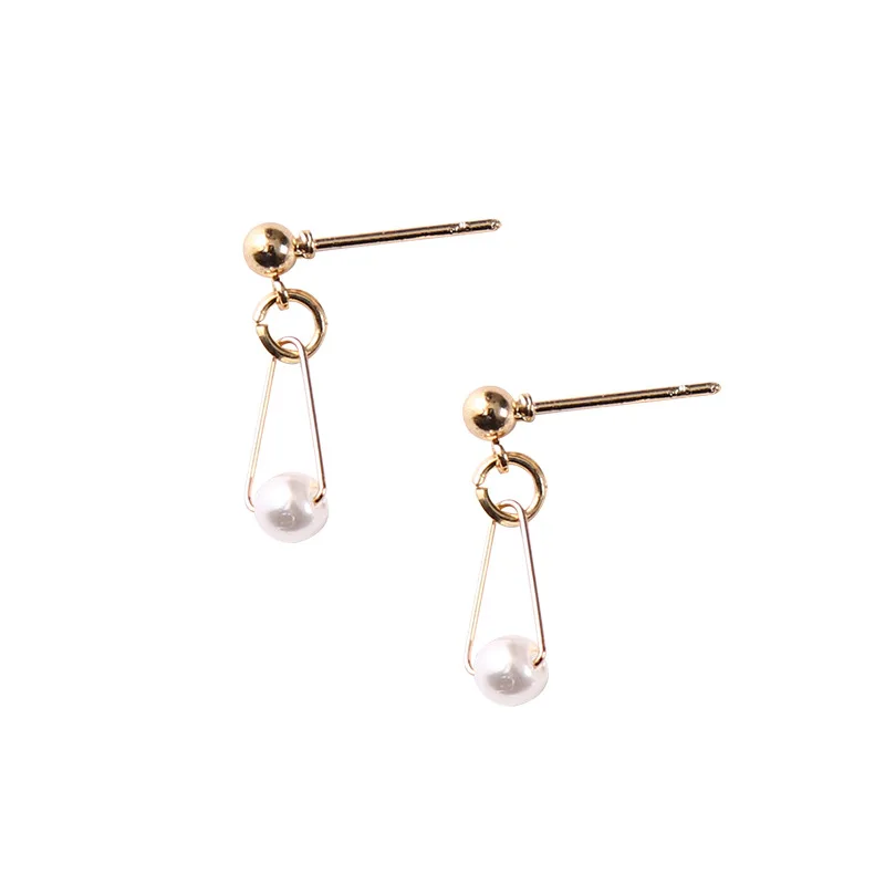 Маленькие белые искусственные жемчужные бусины полые маленькие обручи простые женские золотые висячие серьги