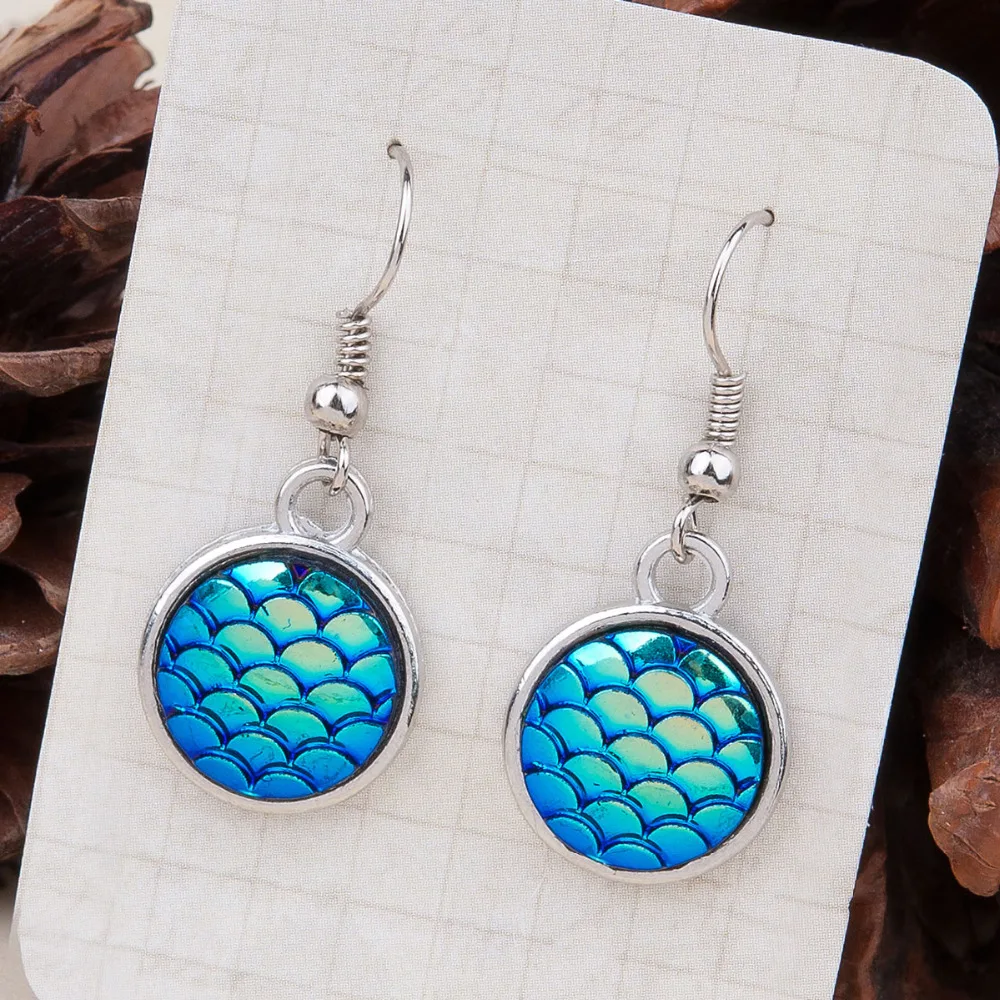 DoreenBeads ручной работы Русалка из смолы рыбы чешуя дракона серьги тусклый Серебряный Синий AB Цвет Круглый 34 мм (1 3/8 ") x 15 мм (5/8"), 1 пара