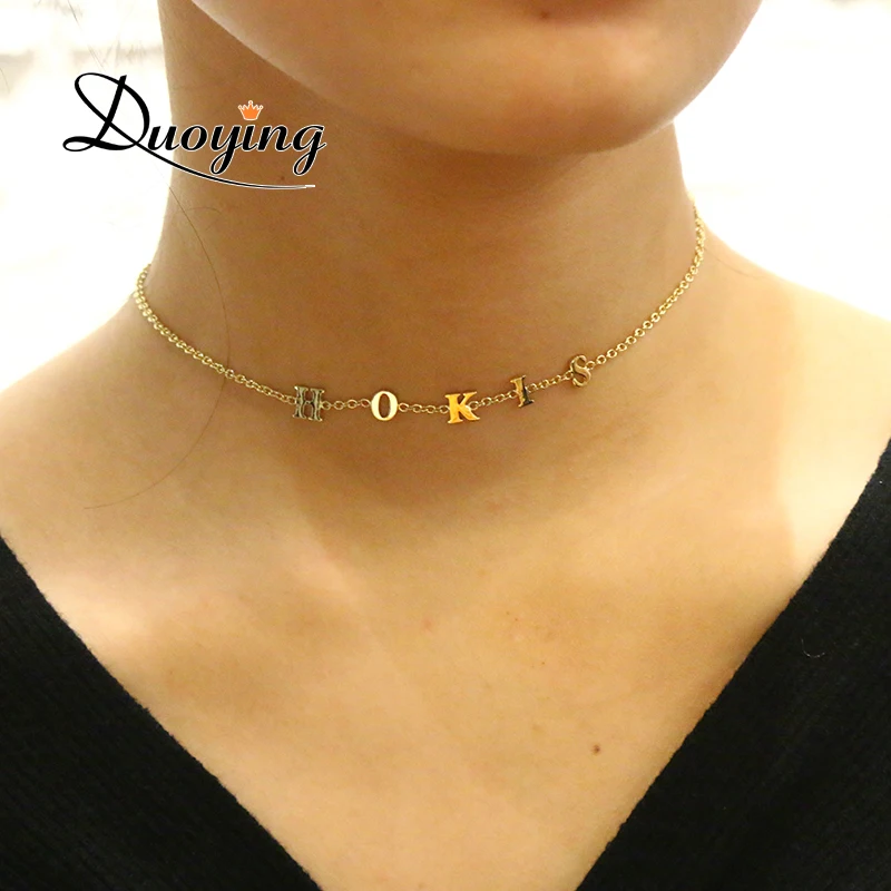 Duoying крошечные ожерелья-чокер для Etsy 6 мм Золотая буква индивидуальные именные ожерелья минимализм изысканные ожерелья для женщин