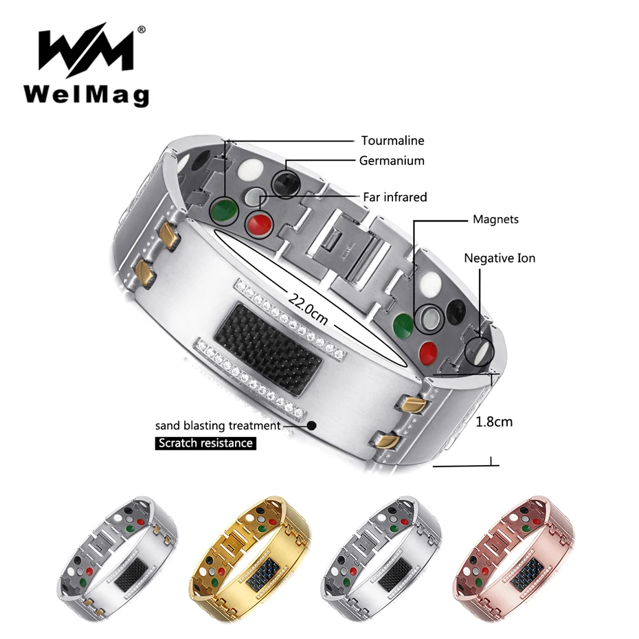 WelMag 2020 титановые браслеты 5 в 1, Кристальные магнитные браслеты для мужчин, германиевый турмалин, мужской браслет для здоровья