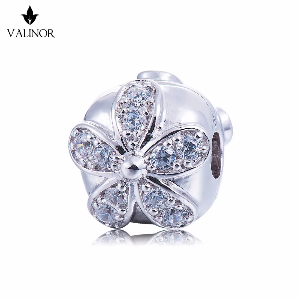 Видео! Дейзи инкрустированный Циркон 925 пробы серебряные бусины Подвески fit Браслеты и браслеты не меняют цвет DDBJ053