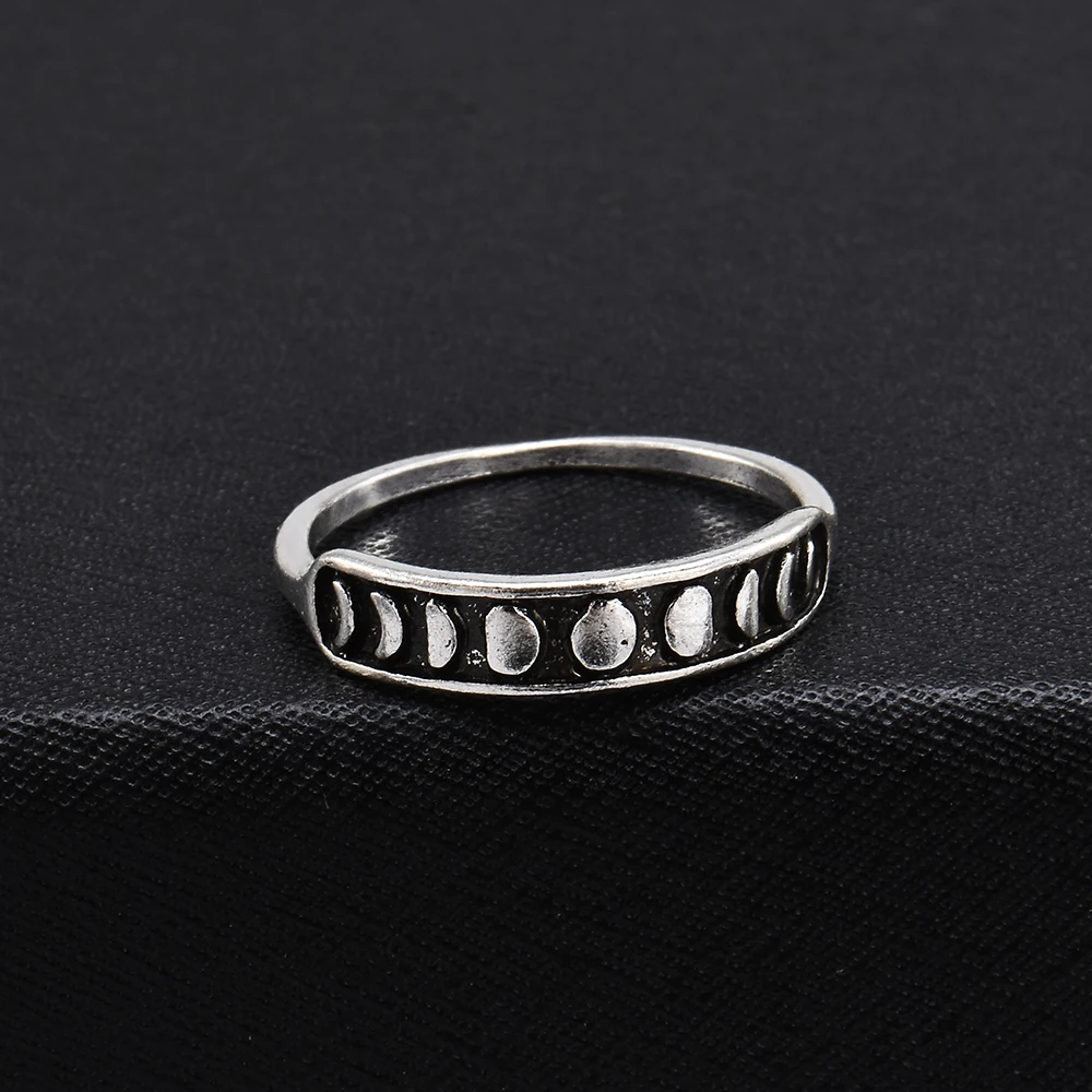 Модное женское винтажное серебряное кольцо ручной работы с фазой Луны, ювелирное изделие, Размер 7-9