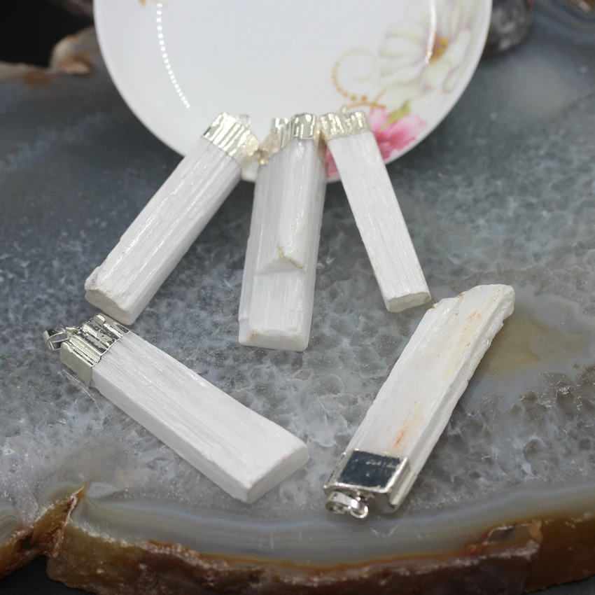 5 шт./лот, покрытие серебряные шапки сырой селенит Кристалл Длинные Плиты Подвески, природный гипс штукатурка кварц камень ломтик подвески ю...