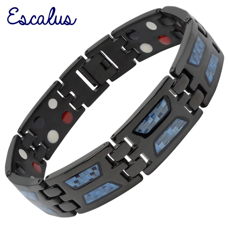 Escalus двухрядные Ele для мужчин t Магнитный чистый титан черный браслет для мужчин ювелирные изделия очарование способствовать кровообращени...