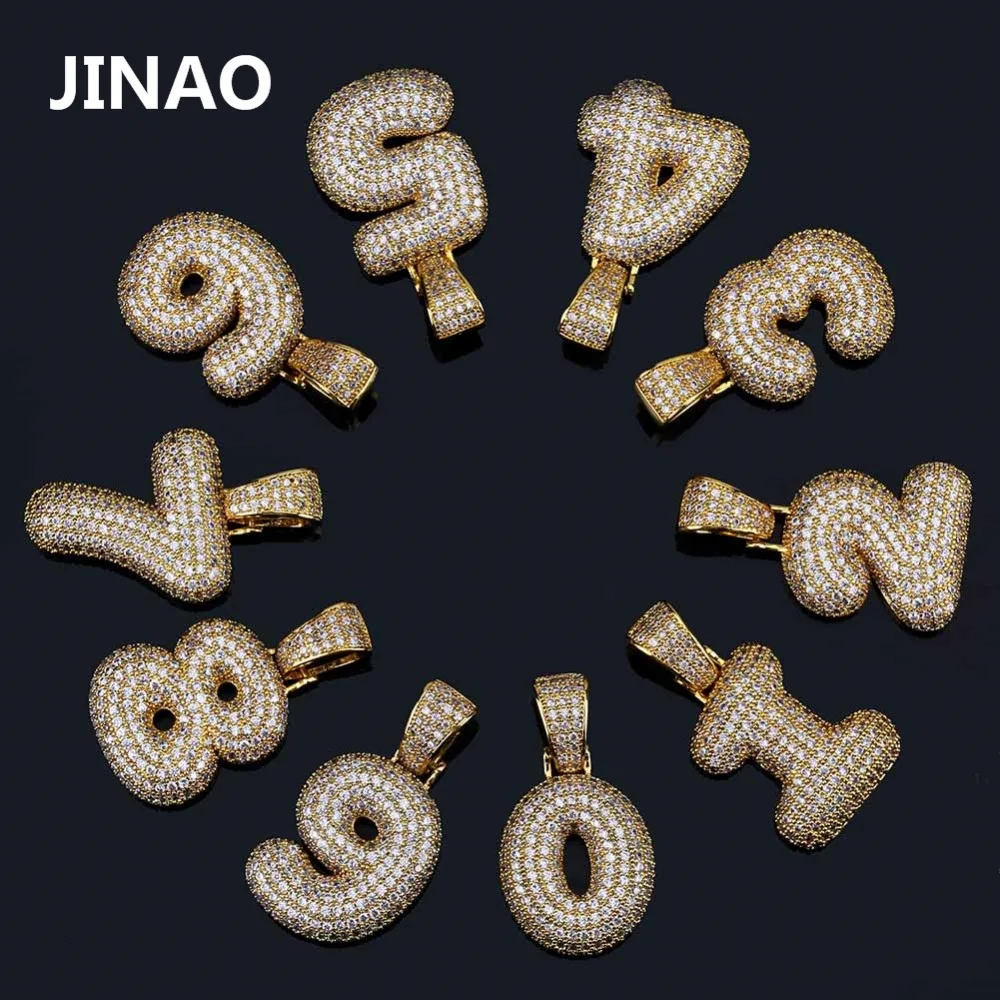 JINAO хип-хоп на заказ название ювелирные изделия 0-9 Пузырьковые цифры ожерелья и кулон золотой серебряный цвет кубический циркон Шарм для муж...