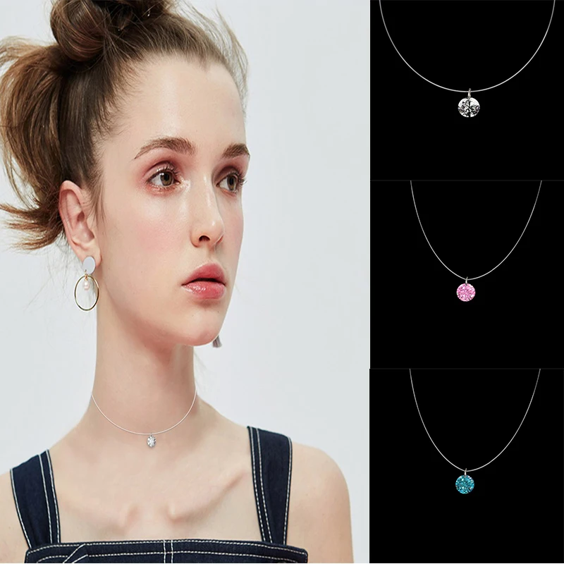IMucci/Цепочки и ожерелья Для женщин невидимая прозрачная звеньевая цепь ожерелья подвеска iMucci/Модная цепочка кристалл