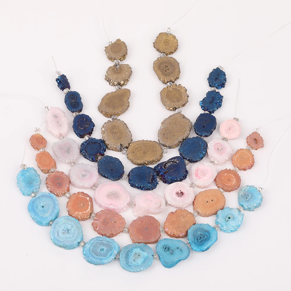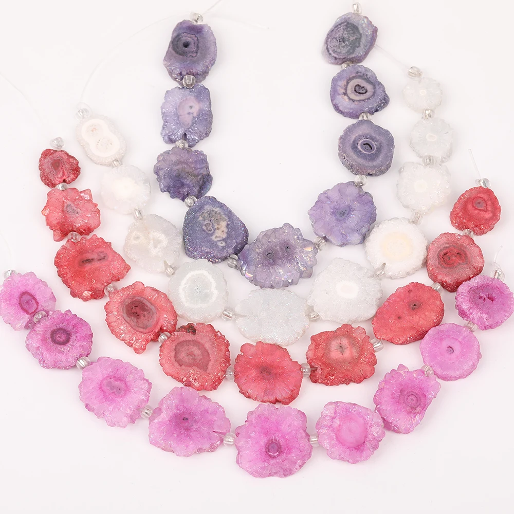 Свободная форма Солнечная друзы Агаты плиты амулеты бусины ювелирные изделия, граненый Просверленный срез солнце цветок свободный браслет...