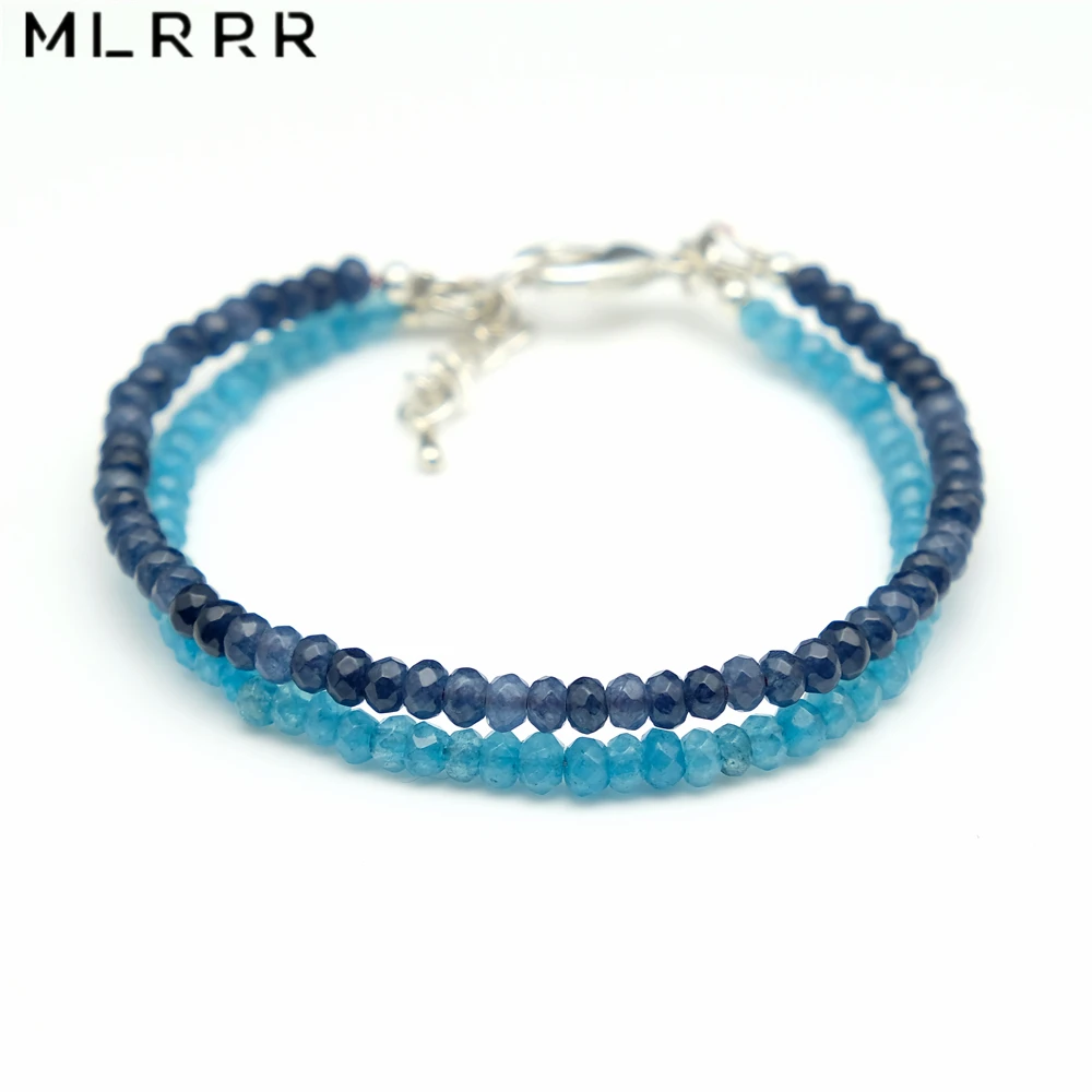 Винтажные классические натуральные камни ювелирные изделия медные ручной работы аквамарины и темно-синие сапфиры брелки из бисера двойные Многослойные браслеты