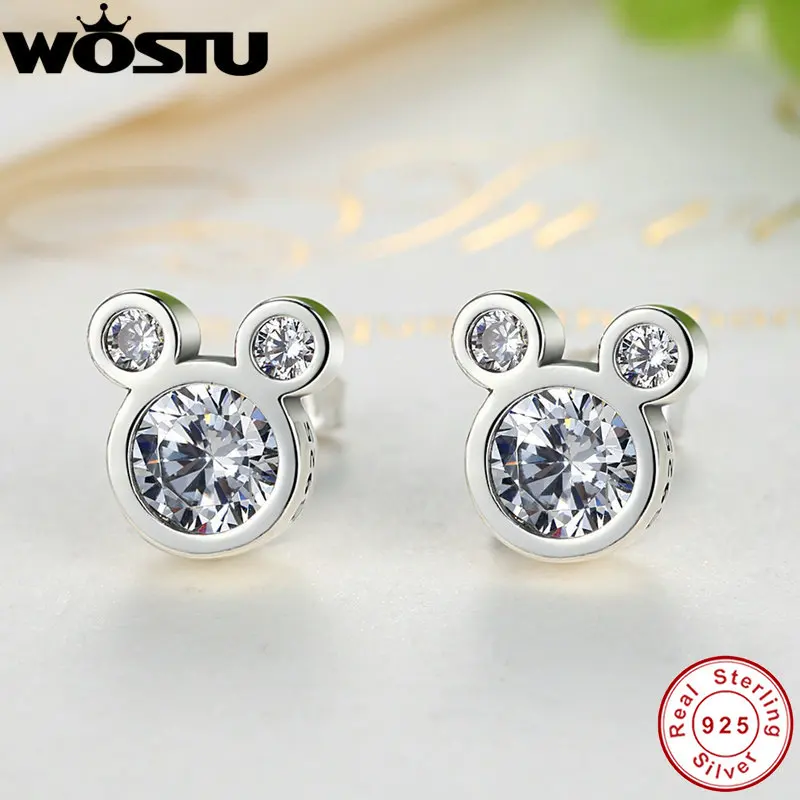 Лидер продаж 100% Серебро 925 пробы милые ослепительно мышь серьги гвоздики для женщин девочек Аутентичные оригинальные украшения подарок