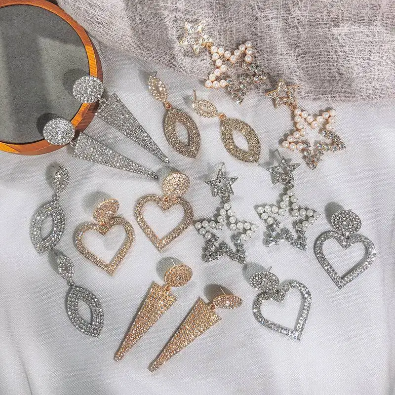Женские серьги в богемном стиле с золотыми кристаллами и комплект жемчужных серег, в форме сердца, Луны, звезды, Креста, геометрических перьев, винтажные модные ювелирные изделия