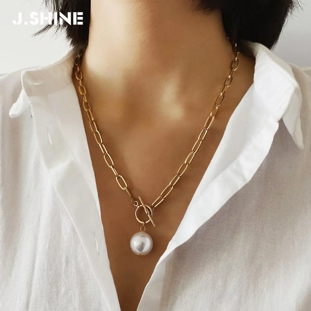 JShine Готическая жемчужная подвеска в стиле барокко ожерелье для женщин Свадьба панк большая бусина Длинная Золотая цепочка ожерелья подвески ювелирные изделия