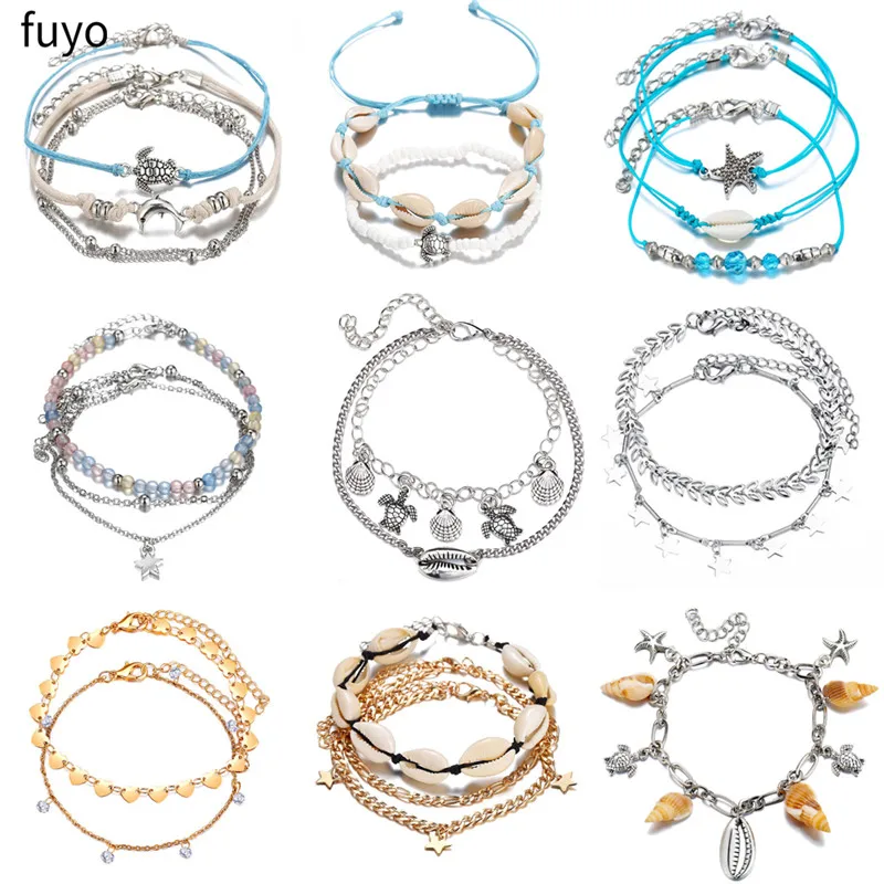 Богемский Браслет на лодыжку набор для женщин природа оболочка сердце браслет на лодыжку звезда 2019 браслет на ногу босиком Сделай Сам ювелирные изделия для ног пляжные аксессуары