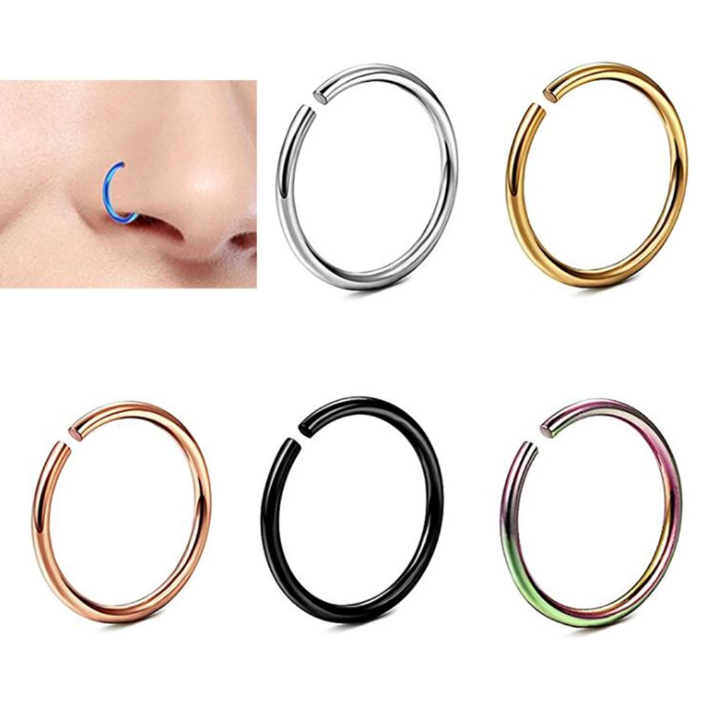 2 шт/комплект Новое поступление 0,8 мм хирургическая Сталь маленький нос кольца цвета: золотистый, серебристый тела Клипы обруч для Для женщи...